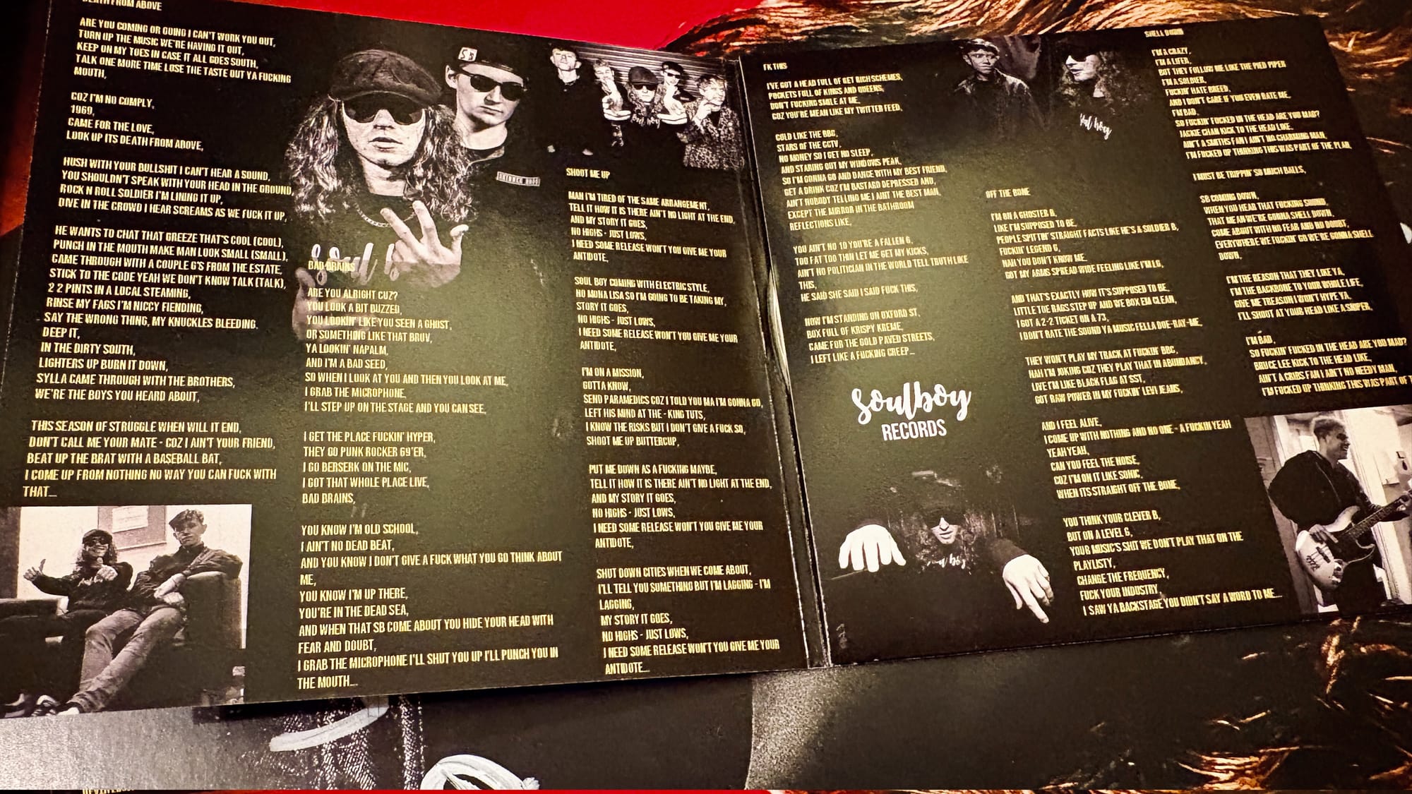 I thought it worth mentioning that Death from Above holds a particular place in my heart for reasons slightly beyond the music itself. In July 2024, literally days after I discovered The Skinner Brothers, I placed my very first merch order. It included a signed copy of Soul Boy IV on vinyl and a signed copy of the Death from Above EP on CD. It's a lovely gate-fold CD (props to Noir X as always for the cover) and as you can see from the photos, includes the full lyrics inside the sleeve. Yes, you heard me, it has the actual lyrics printed on the inside! I was absolutely thrilled with that! Back in the days when I mostly listened to vinyl (I won't mention exactly how long ago that was), it was a common thing to include the printed lyrics, usually on the inside of a gate-fold cover or in a separately printed booklet tucked into the sleeve. I spent many days and nights listening to an album with the cover or lyric booklet in my hands. I wish that tradition had carried on to today's vinyl and CD market, but alas it seems very rare.